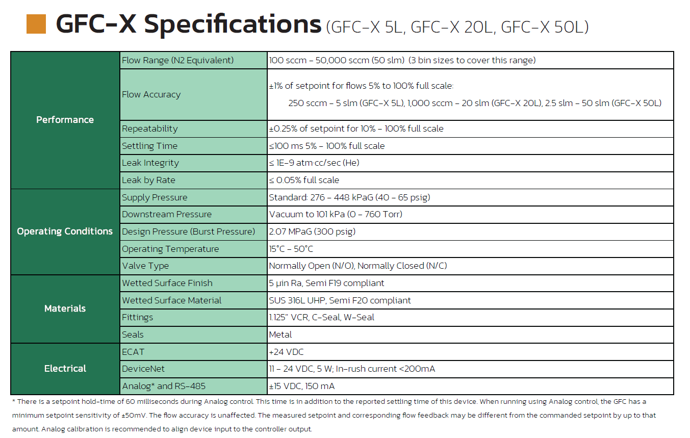 The GFC-X, the latest generation in Pivotal System’s high-flow product line, features a pressure-based flow controller with a position control valve, allowing for precise control. We offer one of the industry’s widest ranges of accuracy, making it ideal for various applications, including deposition processes. The GFC-X paves the way for the future of gas flow control by offering an order of magnitude improvement on key flow metrics and enabling advanced wafer-manufacturing processes. In addition, the GFC-X offers a range of accuracy from 5% to 100% of full scale, surpassing many competitors.